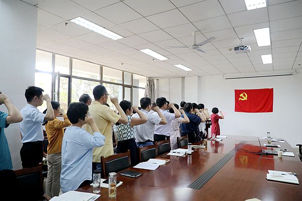 党课之后,全体党员在副院长刘建兰带领下,伫立在鲜红的党旗前重温了入党誓词。之后学院为每位党员颁发了《初心——红色书信品读》等书籍作为政治生日礼物。