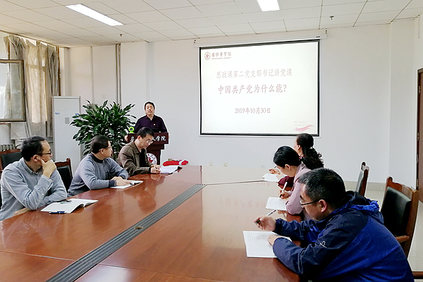 1030日下午,思政课第二党支部在办公楼会议室开展主题党日活动,支部书记宗先顺为全体党员讲授了题为“中国共产党为什么能”的党课。