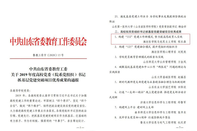 近日,中共山东省委教育工委发文,对全省25个高校党委书记抓基层党建突破项目优秀成果和25个高校院系党组织书记抓基层党建突破项目优秀成果进行了通报表扬。美女图片大全 党总支书记程乐森抓基层党建突破项目成果《构建“332”党建工作新模式 努力提高思政育人实效》抓基层党建突破项目被评选为优秀成果。