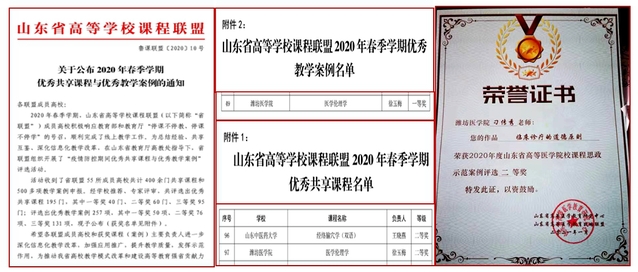 l 《医学伦理学》获山东省高等学校课程联盟2020年春季学期优秀共享课程二等奖