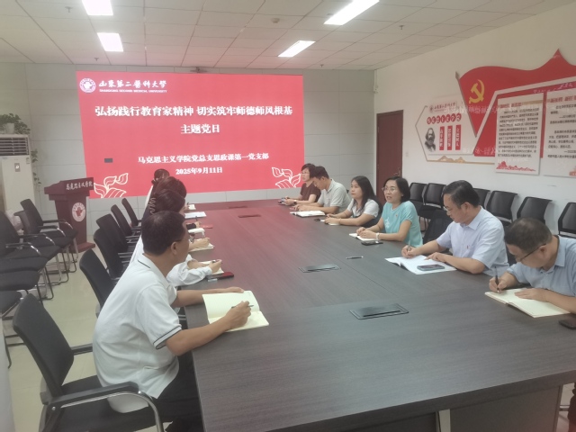 为深入学习贯彻教育家精神,强化教师队伍思想政治教育和师德师风建设,9月11日下午,思政课第一党支部在206会议室开展“弘扬践行教育家精神,切实筑牢师德师风根基”主题党日活动。活动由支部书记王玉福主持,全体党员参加。