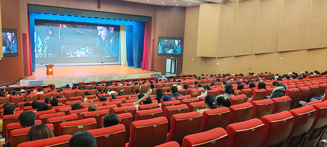 此次观影活动是思政课实践教学系列活动之一,也是一堂生动的思想政治教育课,激励大家将爱国情怀转化为刻苦学习、奋发成才的实际行动,为实现中华民族伟大复兴贡献青春力量。