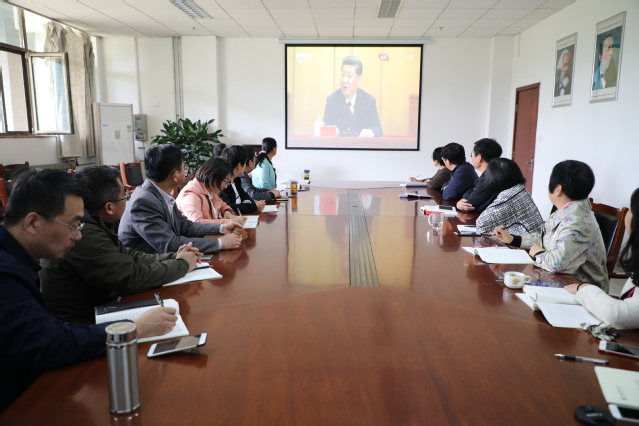 纪念五四运动100周年大会4月30日上午10时30分在人民大会堂隆重举行。美女图片大全 党总支组织全体教师,在行政楼206会议室观看了现场直播。
