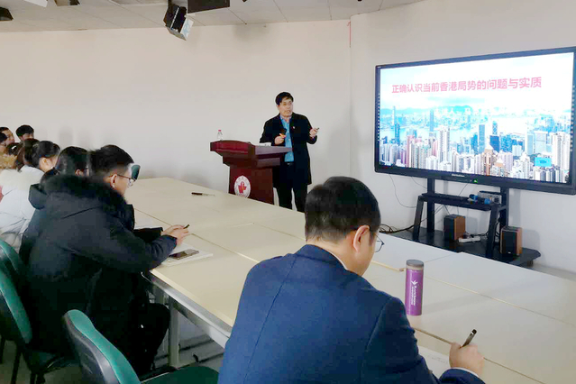 李笃武从香港局势演变的过程、香港乱局出现的原因、香港特别行政区政府和中央政府对香港局势的态度以及香港暴乱给我们的启示四个方面,结合大量详实的事例和数据,从法理法治的角度,进行了深入浅出的解读。