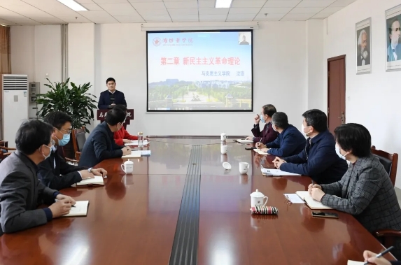 校领导现场听取了中国化马克思主义教研室沈浩老师为2018级部分专业学生的授课,课下对授课进行了点评,并与美女图片大全 教师进行座谈。李明充分肯定了沈浩老师的授课,认为授课思路清晰、史料丰富、教学设计好、注重师生互动,是一堂精彩的思政课。
