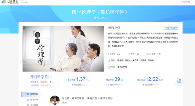 2、医学伦理学在线课程建设获得了良好的社会评价