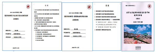近几年,课程教学团队以自建在线课程为基础,逐步探索《医学伦理学》线上线下混合式教学改革新模式和课程形成性评价的新方法,实践实施得到了学校专家的认定和较好评价,为省级一流课程建设奠定了良好的改革实践基础。