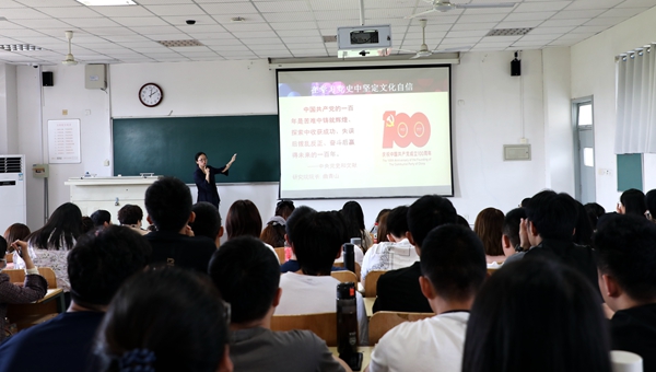 郎宁老师从“毛泽东思想和中国特色社会主义体系概论”课程的章节内容中选材,以“在学习党史中坚定文化自信”为题,从文化的内涵、坚定文化自信和提升中华文化软实力三个方面讲授了中国特色社会主义文化的历史底蕴和时代价值,深刻解读了我们国家从文化古国、文化大国到走向文化强国的历史必然和趋势要求。郎宁老师的课坚持以学生为中心,教学思路清晰,教学内容逻辑关联性强,教学方法使用得当,学生听讲认真,取得较好的教学效果,展现了作为一名思政课青年教师的风采。课后,大家对此次示范课予以充分肯定,相互交流了观摩体会。
