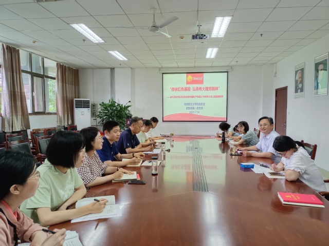 为深入学习贯彻习近平总书记“七一”重要讲话精神,7月16日下午,思政课第一党支部在党员活动室开展“‘传承红色基因,弘扬伟大建党精神’——学习习近平总书记庆祝中国共产党成立100周年大会上的重要讲话”主题党日活动。
