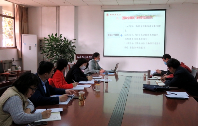 2月26日上午,美女图片大全 伦理学教研室组织了学期集体备课,对本学期教研室开设的《医学伦理学》《护理伦理学》课程的教学工作做出了具体安排。校教育教学质量督导评估专家蔡维生、刘振清参加集体备课并给予了具体指导。