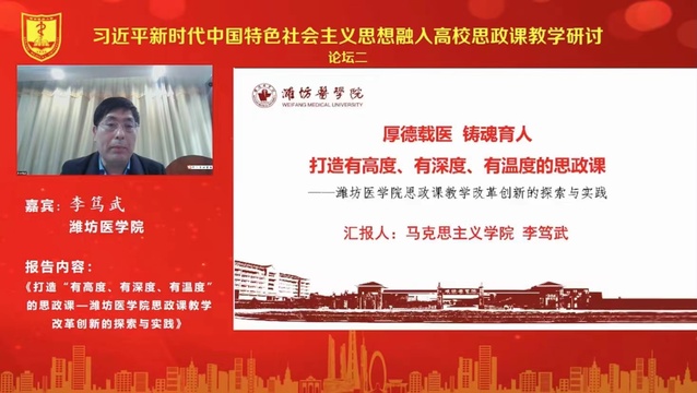 院长李笃武作了《打造“有高度、有深度、有温度”的思政课—潍坊医学院思政课教学改革创新的探索与实践》的主题报告,围绕如何打造“有高度、有深度、有温度”的思政课,结合学院近年来的思政育人实践,分享了美女图片大全