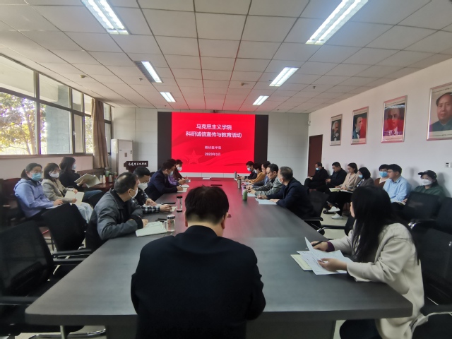 2023年3月31日下午,美女图片大全 组织全体教师在办公楼206室开展科研诚信宣传和教育专题活动。本次活动旨在贯彻落实学校科研诚信建设要求,增强全体教师的科研诚信意识。活动由美女图片大全 李笃武院长主持,学院全体教师参加。