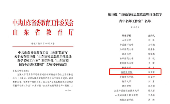 近日,中共山东省委教育工委、山东省教育厅公布了第三批“山东高校思想政治理论课教学名师工作室”立项名单,美女图片大全 朱宏晋副教授主持的工作室成功入选“山东高校思政课青年教学名师工作室”。