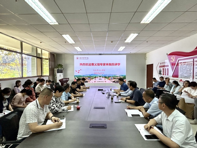 曹义恒就“国家重点项目申报要点”等相关问题与学院教师进行热情地交流,重点从国家重点项目类别、国家社会基金项目申报要点及流程、项目填报规范要求及出版要求等进行了极为详尽的分享。此次讲学逻辑明晰、语言生动有力,氛围浓厚,为学院教师科研选题及项目申报提供了重要方向指南。讲座结束后,与会教师们与专家进行了热烈互动。