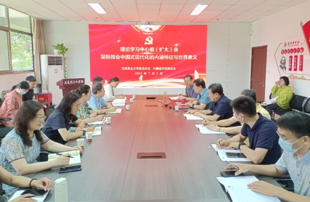为持续推进学习贯彻习近平新时代中国特色社会主义思想主题教育走深走实,进一步加强理想信念教育和党性教育,助力教师党员走好中国式现代化之路,7月3日上午,美女图片大全 党总支联合外国语学院党总支召开理论学习中心组(扩大)会议。会议由美女图片大全 党总支书记程乐森主持,美女图片大全 和外国语学院党总支成员、党员教师代表参加会议。
