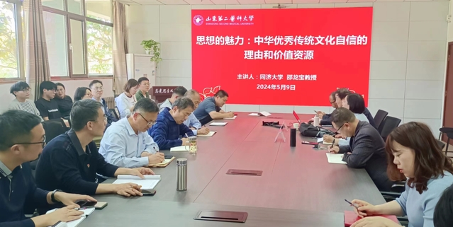 邵龙宝教授以《思想的魅力:中华优秀传统文化自信的理由和价值资源》为题,从文化与思想在历史中的功用、中华优秀传统文化有什么值得自信的精髓、中华优秀传统文化创造性发展思路三方面进行了学术分享。整场讲座逻辑严密、思路清晰、观点鲜明,受到了教师们的一致好评。刘建兰书记总结发言,她指出:邵龙宝教授的学术讲座内容丰富、立意高远、讲解透彻,为参会教师增长学识、启发思维、开拓视野提供了有益借鉴。讲座结束后,邵教授与参会教师就如何开展科研工作进行了深入交流。