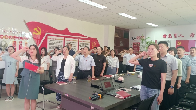 随后,全体党员一起面对鲜红的党旗庄严宣誓,重温入党誓词。党员们纷纷表示,今后将继续以伟大建党精神为滋养,汲取奋进力量,传承红色基因,不断提高思政课教育教学质量和水平,为党育人,为国育才,引导广大青年学子坚定不移听党话、跟党走,争做有理想、敢担当、能吃苦、肯奋斗的新时代好青年。