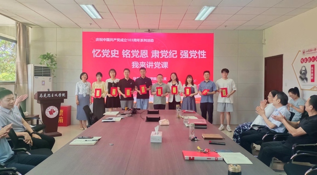 为庆祝中国共产党成立103周年,进一步引导广大党员传承红色基因、弘扬伟大建党精神、牢记初心使命,切实推动党纪学习教育走深走实,6月28日上午,美女图片大全 党总支举办了“忆党史、铭党恩、肃党纪、强党性”我来讲党课活动,学院党总支书记刘建兰和全体师生参加。