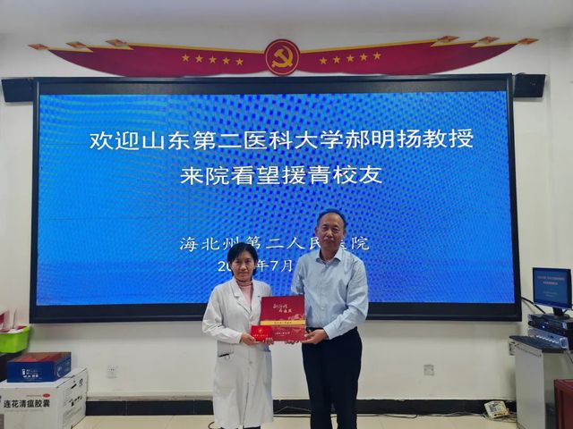 2008届毕业生、山东省卫生健康委员会对口支援办公室副主任代兵陪同郝明扬老师看望大家,并鼓励大家努力工作,以优异的成绩感恩母校,回报社会。