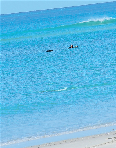 坦桑尼亚达累斯萨拉姆市海边,张军桥(左)营救溺水的当地民众。