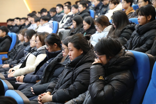最后,全体师生起立,通过现场直播集体观看在南京举行的国家公祭仪式,并向惨遭日本侵略者杀戮的死难同胞们进行默哀。师生们纷纷表示,在这个特殊的日子里,沉浸式思政课带来直击心底的震撼,自己真切读懂“铭记”从不是一句口号,它是对苦难的敬畏,更是对未来的担当。新时代我们更要不忘国殇、以史为鉴,把悲痛转化为砥砺前行的奋进力量,用实际行动捍卫来之不易的和平,为建设社会主义现代化强国、维护世界和平与发展贡献青春力量。